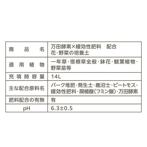 【4個セット】万田酵素×緩効性肥料 配合 花・野菜の培養土14L