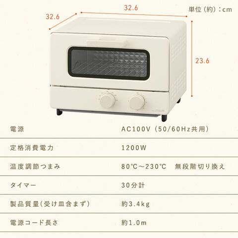 トースター 2枚焼き 4枚焼き おしゃれ かわいい 角皿付き 80℃ 230℃ 無段階調整 タイマー付き 新生活 シンプル アイリスオーヤマ EOT-201-W [家電]