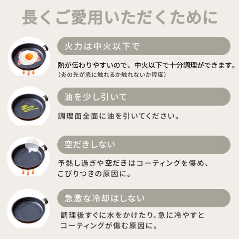 ※必ず中火以下で、調理面には油をひいてご使用ください。