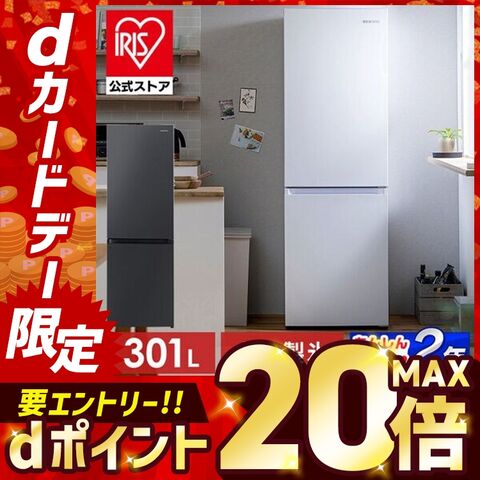 冷蔵庫 301L 大凍量シリーズ 大型 ひとり暮らし スリム 急速冷凍 冷凍冷蔵庫 2ドア 自動製氷機付き 霜取り機能付き 霜取り不要 ファン式 右開き 大容量 家庭用 省スペース 新生活 冷凍冷蔵庫 ホワイト ブラック アイリスオーヤマ IRSN-I30A [家電]