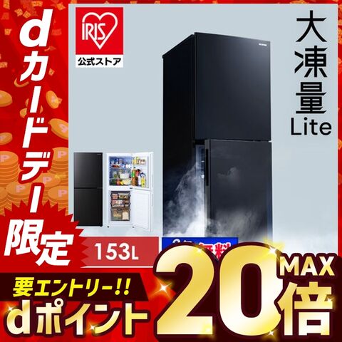 冷蔵庫 153L 大凍量シリーズ 大型 ひとり暮らし アイリスオーヤマ 2ドア 大容量冷凍室 急速冷凍モード 自動霜取り ファン式 家庭用 耐熱トップテーブル 白 黒 IRSN-HF15A 【安心延長保証対象】 [家電]