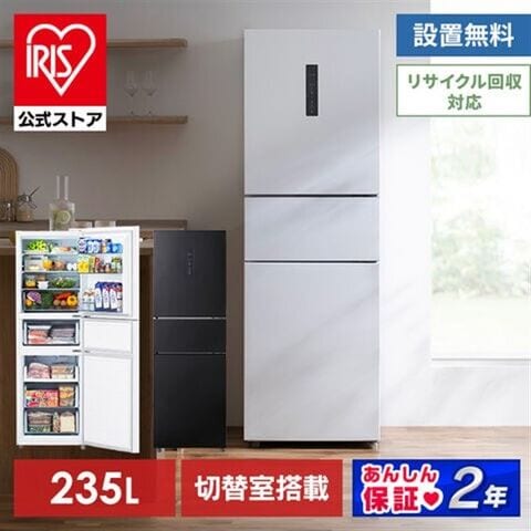 冷蔵庫 235L 大凍量シリーズ 大型 ひとり暮らし 3ドア 大容量冷凍室 ソフト冷凍 冷凍冷蔵庫 自動霜取り ホワイト 二人暮らし アイリスオーヤマ IRSN-HF24A 【安心延長保証対象】 [家電]
