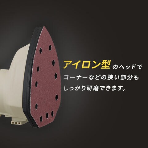 アイロン型のヘッドでコーナーなどの狭い部分もしっかり研磨できます。