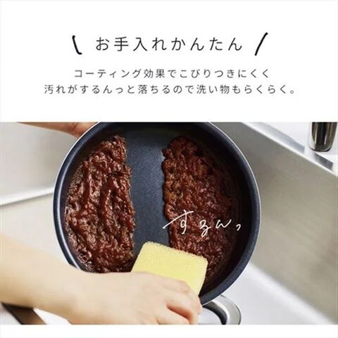 コーティング効果でこびりつきにくく、汚れもするっと落ちるので洗い物もらくらく。