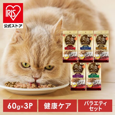 【全種お試しセットも選べる】 キャットフード ウェット 3P 猫餌 パウチ 猫 ご飯 ウェットフード 腎臓 心臓 毛玉 腸 サポート 健康サポート まぐろ ささみ 介護食 フード 美食メニュー アイリスオーヤマ P-60 *