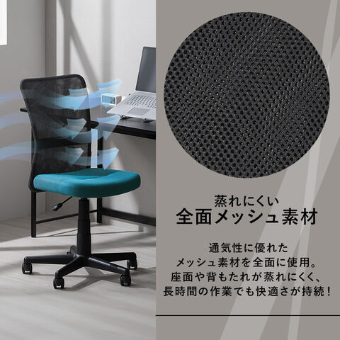 座面や背もたれがムレにくく、長時間の作業でも快適さが持続!