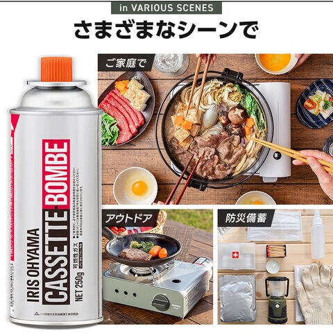 ご家庭で、アウトドアや防災備蓄にも。さまざまなシーンで利用可能なカセットガスボンベ。