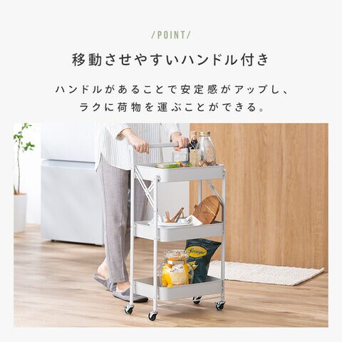 工具不要で組み立てかんたん、折りたたんで収納もできる!さまざまなシーンで使えるキャスター付きスチールワゴン。