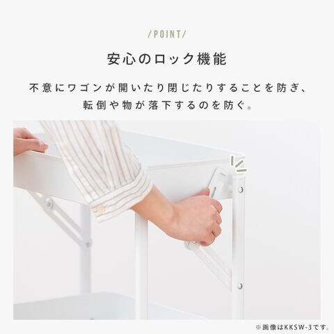 ワゴンの転倒や収納した物の落下を防ぐ。