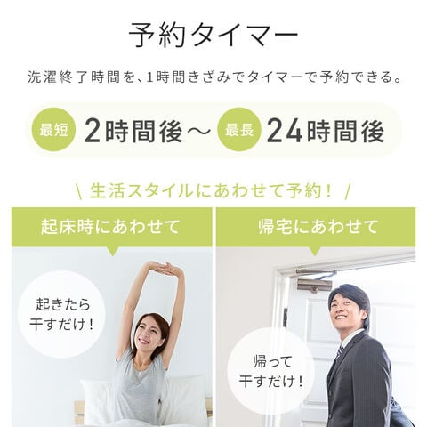 洗濯終了時間に合わせてタイマー予約できる。