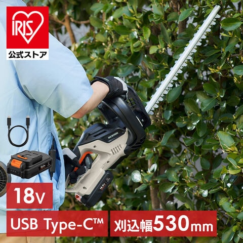 【Type-C充電&バッテリー共用できる】ヘッジトリマー 充電式 18V 電動 軽量 剪定バリカン コンパクト コードレス 生垣 植木 庭木 枝切り ブレードカバー付き アイリスオーヤマ JHT530TC *