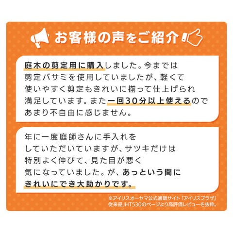 長時間(※)使えて、広範囲の刈り込みにおすすめなヘッジトリマーです。