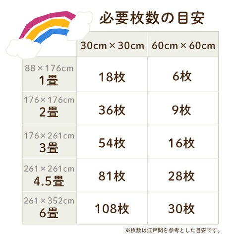 敷くだけでお部屋がパッと明るく、グッと可愛く!セット内容:正方形マット×18枚、サイドパーツ×36枚