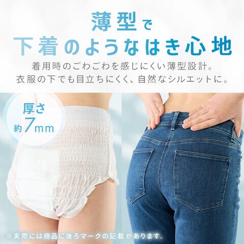 薄型、スピード吸収、のびるウエスト。