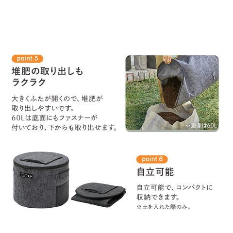 底面にファスナーが付いているので、堆肥の取り出しがラクになっています。