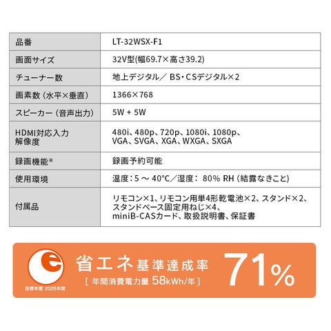 テレビ 液晶テレビ 32型 ハイビジョン Wチューナー 裏番組録画 HDD録画 2台目 セカンドテレビ 子ども部屋 寝室 シンプル tv 32v型 アイリスオーヤマ LT-32WSX-F1