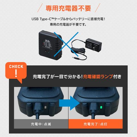 USB Type-C TMケーブルからバッテリーに直接充電!