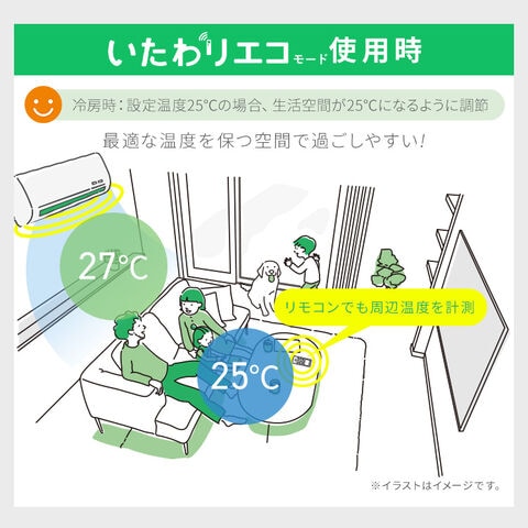 「いたわりエコモード」で、冷やしすぎ・暖めすぎないよう運転を制御して消費電力を抑えられます。