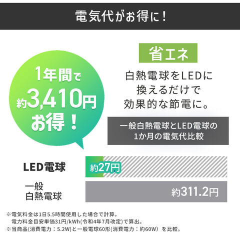 ※1 一般電球型7Wを1日10時間、365日使用した場合。