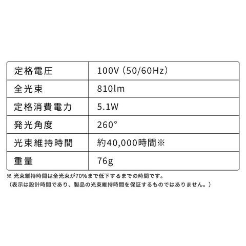 (表示は設計時間であり、製品の光束維持時間を保証するものではありません