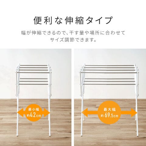幅が伸縮できるので、干す量や場所に合わせてサイズ調節できます。