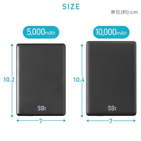 本製品【10000mAh】:幅約7×高さ約10.4cm