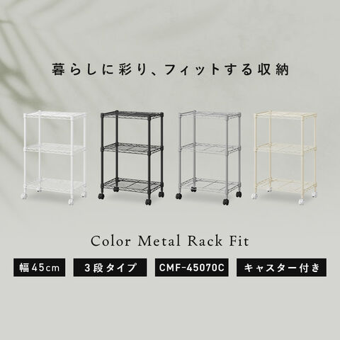 スチールラック メタルラック 3段 ダークグレー キャスター付き キッチンラック ラック シェルフ アイリスオーヤマ カラーメタルラックフィット CMFー45070C [インテリア]