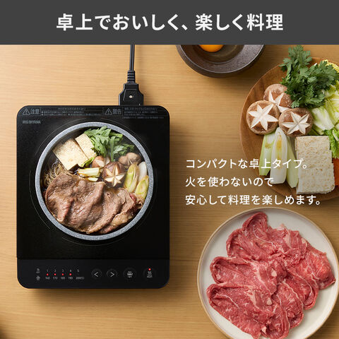 IHクッキングヒーター 卓上 アイリスオーヤマ IHコンロ 一口 1000W 卓上IH コンパクト IH調理器 安全機能付き 切り忘れ自動オフ 温度過剰上昇防止 加熱モード 揚げ物モード搭載 お手入れ簡単 電磁調理器 IHK-TA2P-B 安心延長保証対象