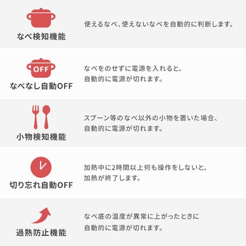 鉄・鉄鋳物、鉄ほうろう、ステンレス、多層鋼なべ※種類によっては発熱しないことがあります。