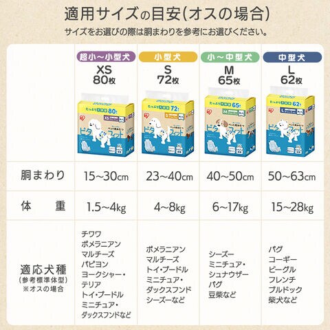 ※サイズに対する犬種はあくまでも目安です。