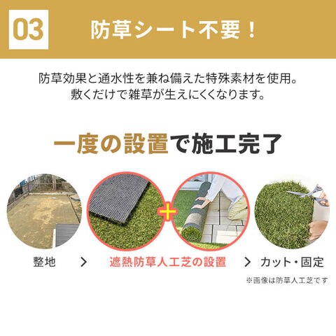 防草効果と通水性を兼ね備えた特殊素材を使用しているため、敷くだけで雑草が生えにくくなります。