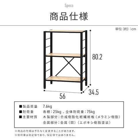 スチールラック 3段 組立簡単 工具不要 棚 シェルフ 収納 キッチン リビング 連結スチールラック KRSR3-560 ナチュラルオーク アイリスオーヤマ [インテリア]