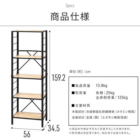 スチールラック 5段 組立簡単 工具不要 棚 シェルフ 収納 キッチン リビング 連結スチールラック KRSR5-560 ナチュラルオーク アイリスオーヤマ [インテリア]