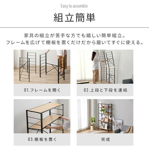 フレームを広げて棚板を取り付けるだけですぐに使えます。