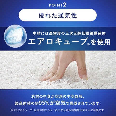 中材には高密度のチューブ状繊維「エアロキューブ(R)」を使用。