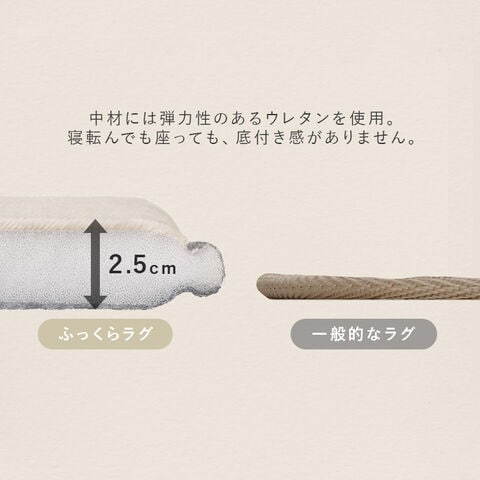 薄すぎず厚すぎない、2.5cmと絶妙な厚さのふっくらラグ。