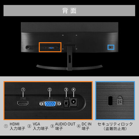 幅広の画面でも見やすいように、上下左右178°の視野角を持つVAパネルを搭載しています。