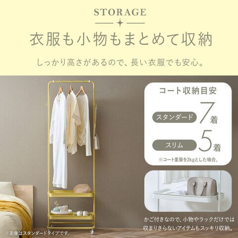 かご付きなので、小物やラックだけでは収まりきらないアイテムもスッキリ収納。
