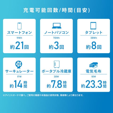 ※明るさ「小」かつライト単独で使用した場合の時間です。