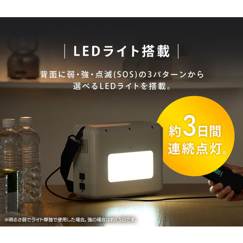 LEDライト付きで、約3日間連続点灯可能なので停電時暗い場所でも安心して使用できます。