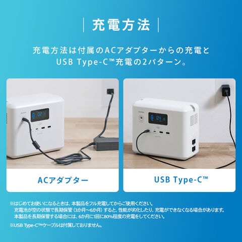 搭載ポート:ACコンセント×2、USB Type-C(TM)×2、USB TypeA×2