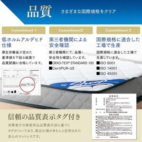 腰部が硬めの3ゾーン構造です。体重が集中し沈み込みやすい腰部を支え、体への負担を軽減します。