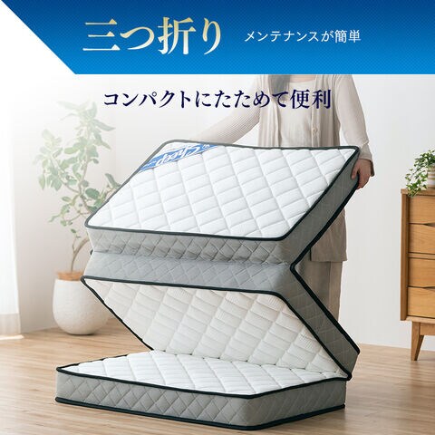 マットレス 三つ折り 厚さ11cm 折りたたみ コンパクト 収納 三つ折りマットレス 硬め 体圧分散 3ゾーン構成 高密度 ポケットコイルマットレス 通気性 お手入れ 簡単 アイリスオーヤマ シープ SheepPMTS11HR-3SD セミダブル *