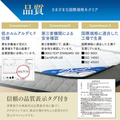 厚さ11cmのかためのポケットコイルマットレスです。