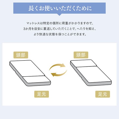 腰部が硬めの3ゾーン構造です。体重が集中し沈み込みやすい腰部を支え、体への負担を軽減します。