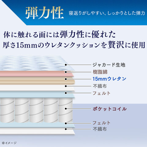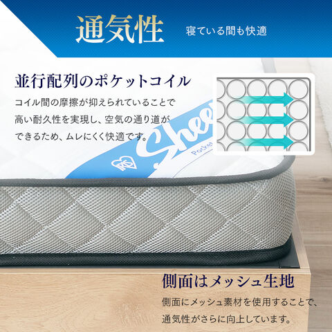 コイルがポケットに包まれ独立しているので、複数の点で身体を支え、体圧分散性に優れています。