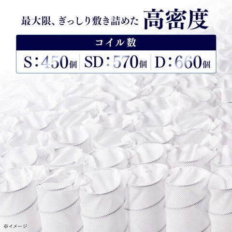 コイルがポケットに包まれ独立しているので、複数の点で身体を支え、体圧分散性に優れています。