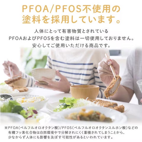 有害物質(PFOA/PFOS)不使用の塗料を使用しているため、安心してお使いいただけます。