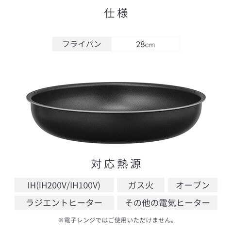 ダイヤモンドコートパン フライパン28cm IH・ガス火対応 NTF-SEI28F ブラックメタリック