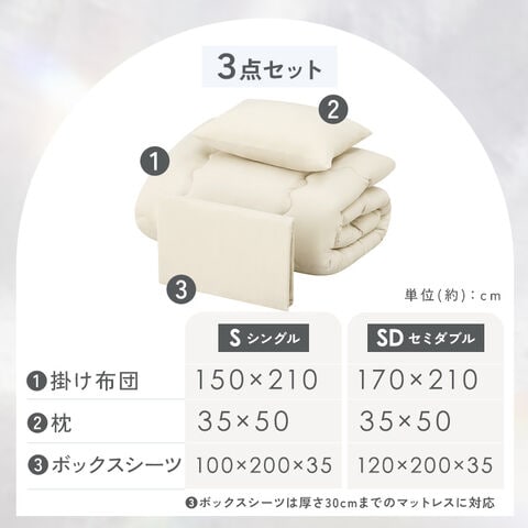 ベッド派におすすめ!最低限のアイテムが揃う3点セット!ピーチスキン加工でなめらかな肌触り。